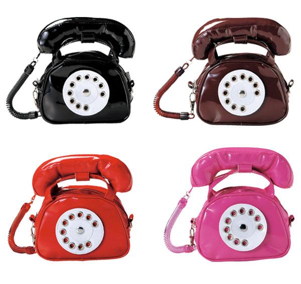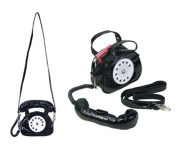 電話のかたちをしたモバイルケースです。受話器アクセサリーは取り外せます。携帯電話やデジタルカメラを入れたり、ポシェットとしても使えます。