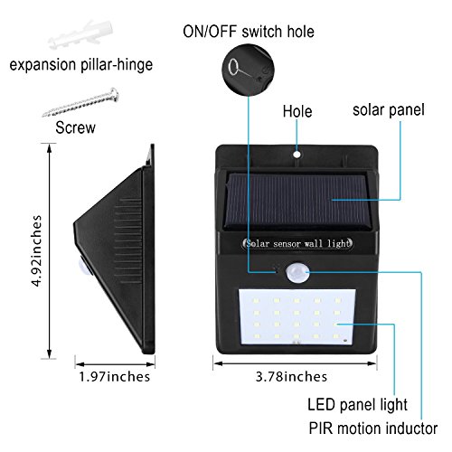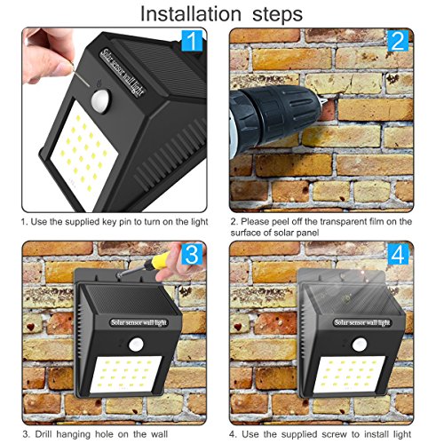 • INSTALLATION IS NO HASSLE: You should just use the nail that comes with your package to install the LED solar-powered device on the wall. Charging time takes about 12 hours, after which the device can work continuously.