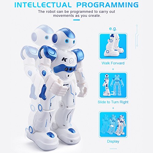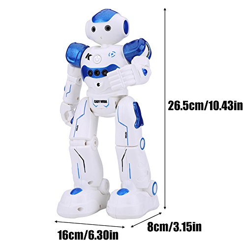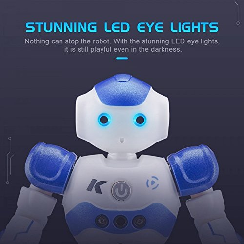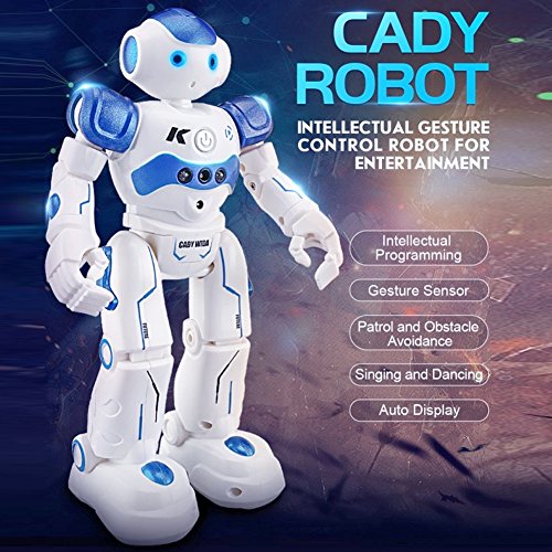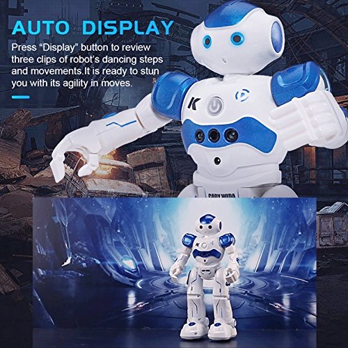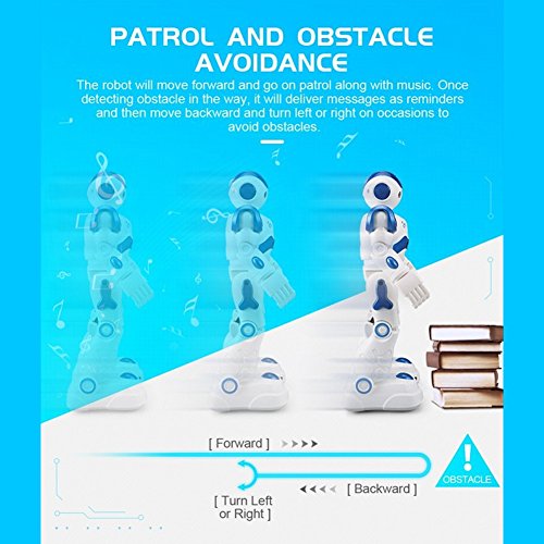 -. Feature : BEST GIFT: This robot toy is a very playful and multi-functional companion, which can do do singing, dancing, patrol and obstacle avoidance, etc. / VIVID APPEARANCE: With flexible joints, high sound clarity, premium eye lighting effect and skating wheels at soles of the feet, this robot toy can be played for a long time if well cared. / GESTURE SENSOR: The robot can follow hand gestures commands that activates forward, reverse, left, and, right movements, along with sound effects. / OBSTACLE AVOIDANCE: Once starting patrol function, the robot can wander around along with music; if it encounters obstacle, it can move backward and then turn left or right randomly. / GUARANTEE: If you are not satisfied with our product received, you can apply for unconditional return and refund in 180 days. In terms of any problem of this product, you can send emails to us at any time. We will reply you soon.