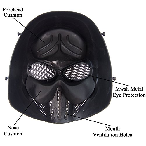 -. Title : Popshot(TM) Outdoor War Game Tactical Protective Gear Skull Steel Mesh Airsoft Paintball Full Face Mask Halloween Mask - Black