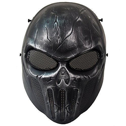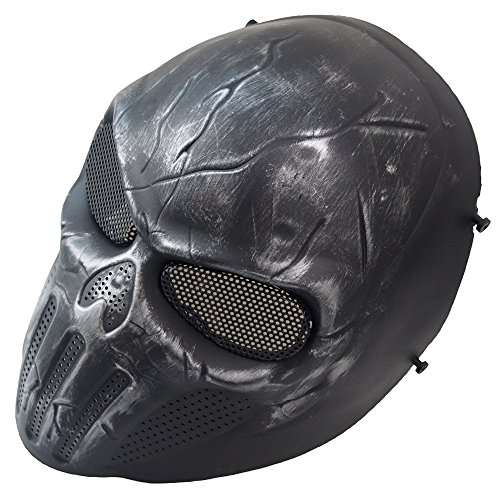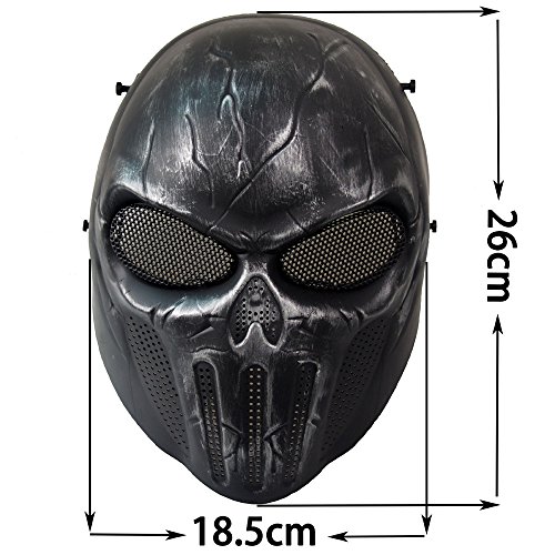 -. Feature : Materials: polyurethane elastic rubber, safety and environmental protection / Size:Full Face,One size fits most teens and adults / Metal mesh eye shield is fully breathable, allowing air to flow through,making your face comfortable / Does not affect the sense of sight, you can also wear glasses or headphones and ensure aimed shot / Suitable for face protection during outdoor CS and field paintball, costume for cosplay and party movies