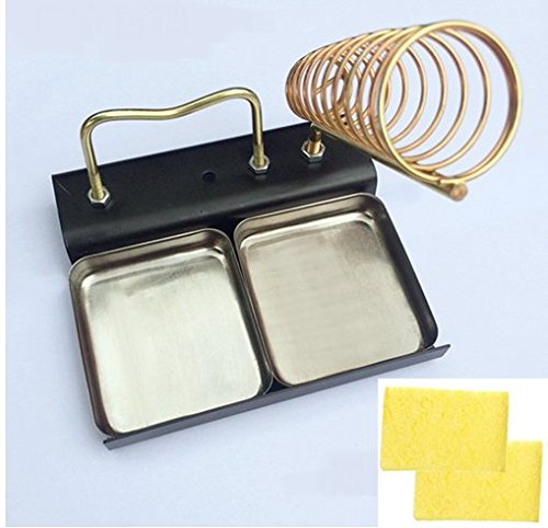 jenifer2015 Multi-function Metal Soldering Iron Stand Holder with 2pcs Sponge & Heavy Duty Black Base (Gold Color Holder)