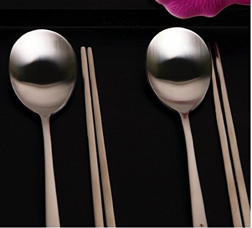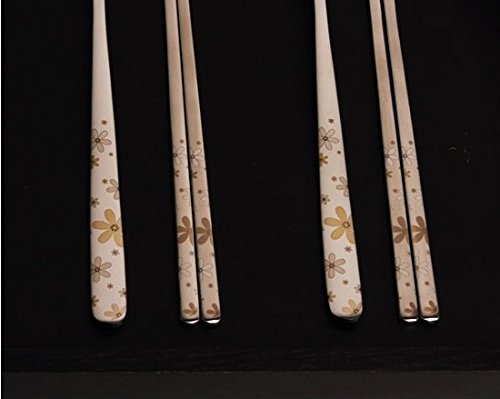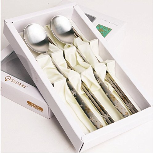 Stainless Steel 2 Sets Korean Style Metal Chopsticks Spoon Set, Golden Herb