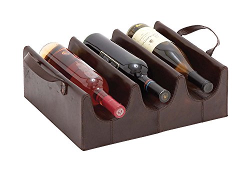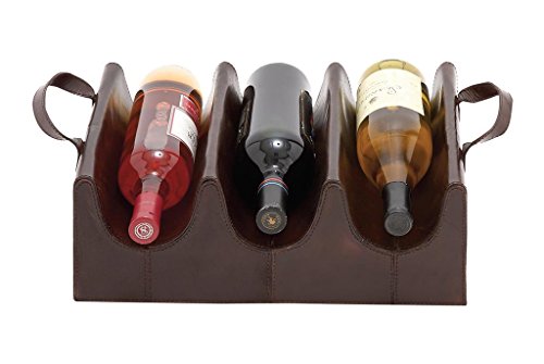 Deco 79 95909 Wood Real Leather Wine Holder, 15" x 5"