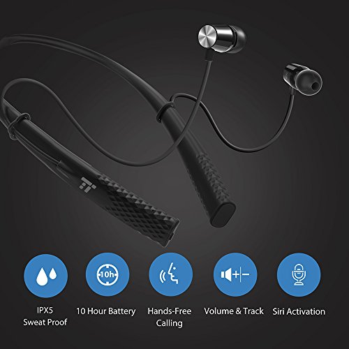 Bluetooth Headphones Neckband, TaoTronics Wireless Headset Magnetic Earphones In Ear Earbuds with Mic (Silicone Gel Surface, CVC 6.0 Noise Cancelling Microphone, IPX5 Waterproof, 10 Hours Playtime)