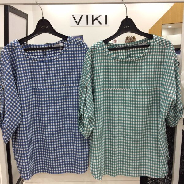은은한 체크패턴이 포인트인 시원한 여름 블라우스입니다.루즈한 핏이며 블루/그린 베이직한 두가지 컬러로 나왔습니다.
