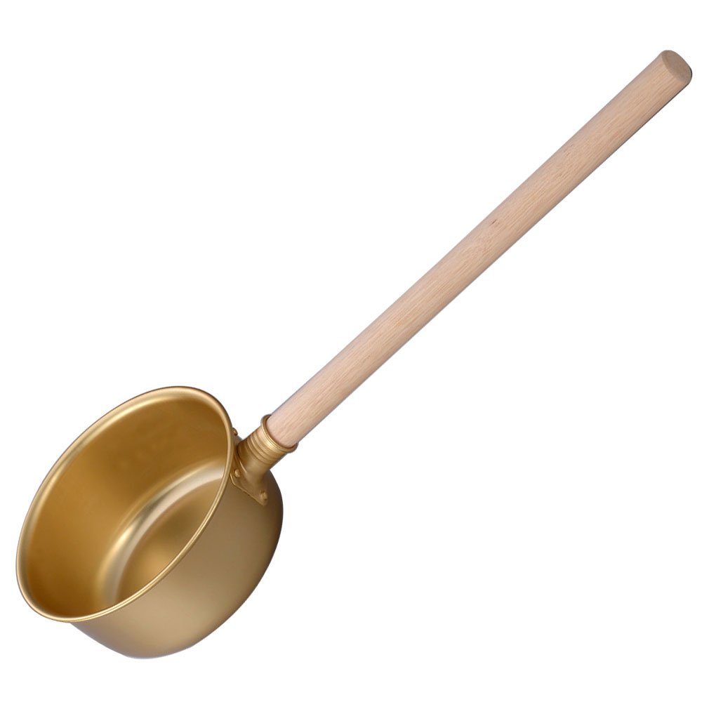 サイズ:幅17.4×奥行56.2×高さ15.9cm 材質:アルミニウム、表面/硫酸アルマイト加工、取っ手/木柄 生産国:日本 板厚:0.5mm 容量:1.5L