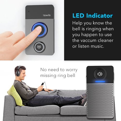 - STYLISH DESIGN & READY FOR EVERYWHERE TO USE - Fashion & stylish design home wireless doorbell kit is suitable for every home to use. Tenvis wireless doorbell is super easy to mount and use. Ready for everywhere to use.