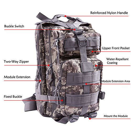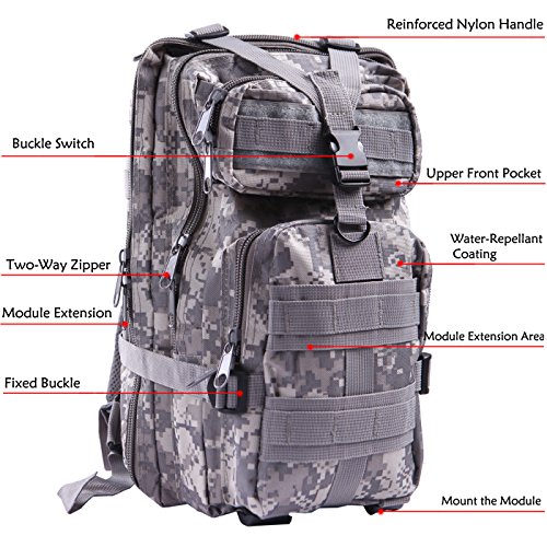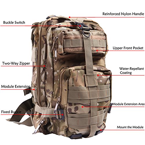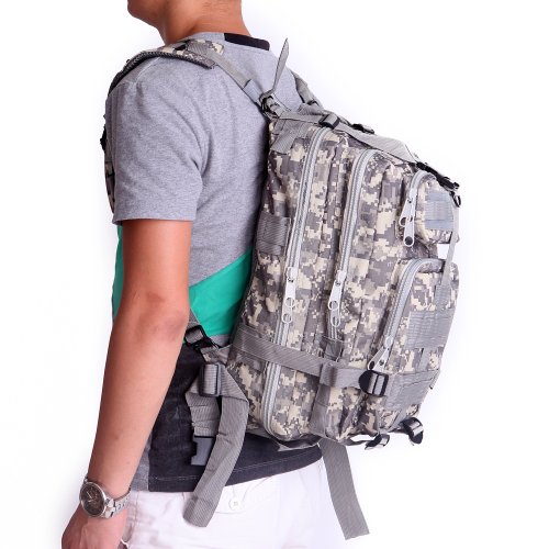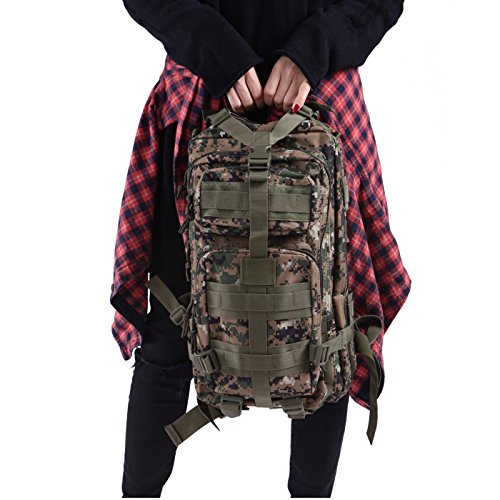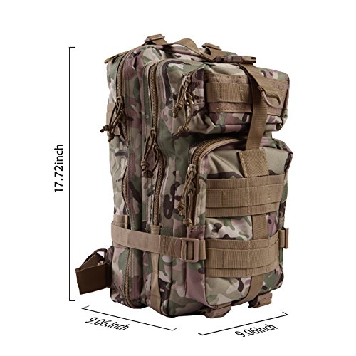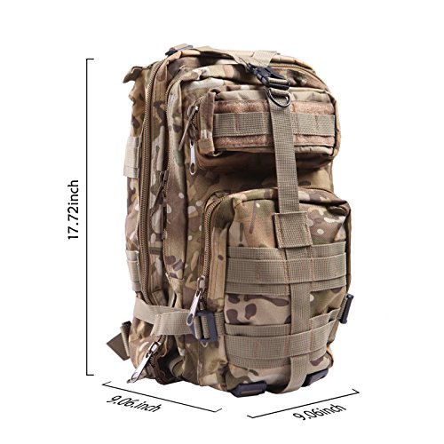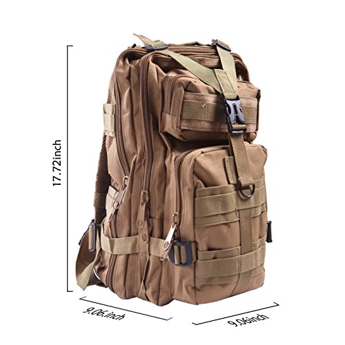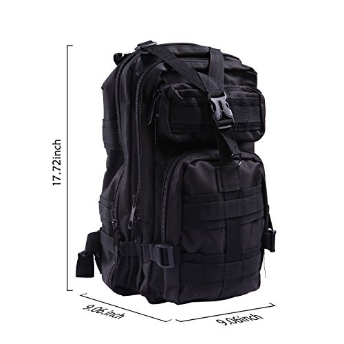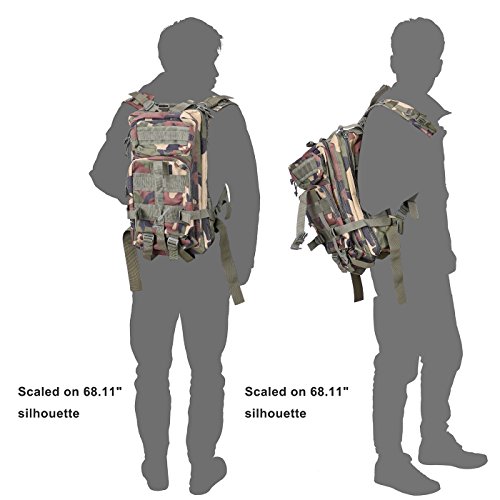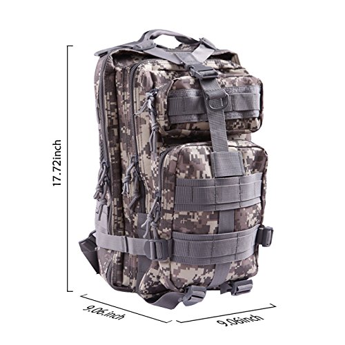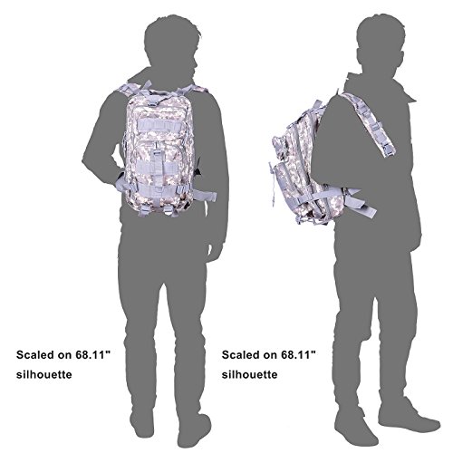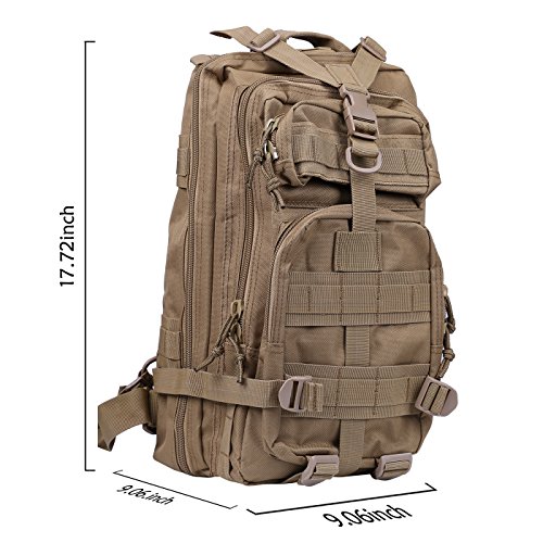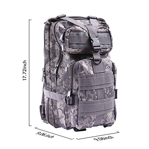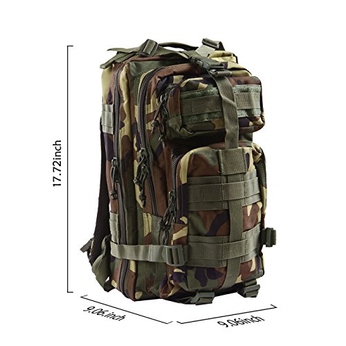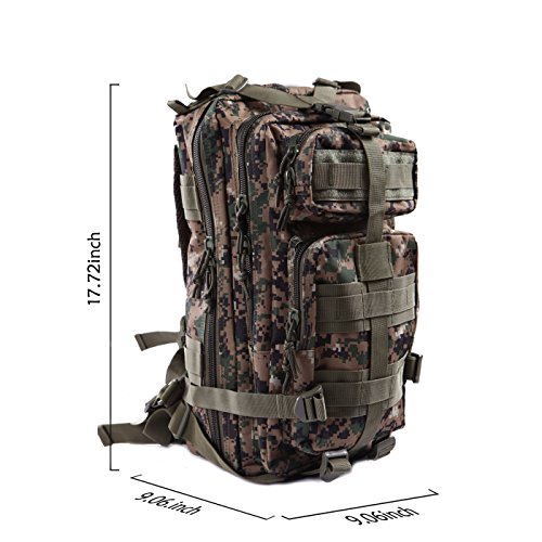 Product Details: Item Type: Backpacks Backpacks Type: Softback Backpack Usage: Normal Camping Hiking Gender: Unisex Closure Type: Zipper Pattern Type: Solid Occasion: Outdoor Style: Sport Capacity: 20L / 1220.47 cubic inches Material: 600D Nylon Colors: Black, Digital Camo, Tan Weight: Approx. 950g/ 2.09Lb Exterior Dimensions: 9" x 9" x 17" Main Interior Dimensions: 9" x 5.5" x 17" 0