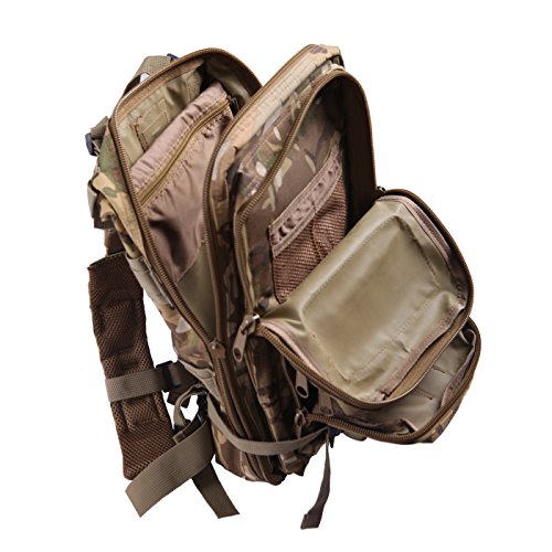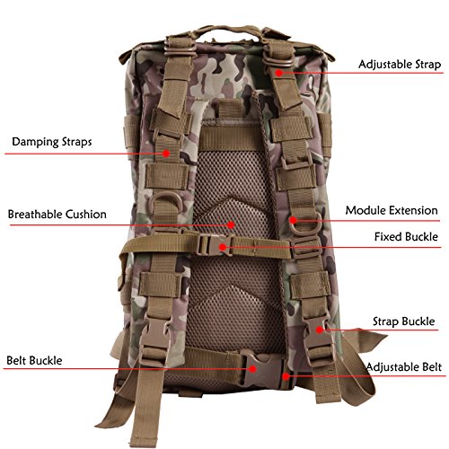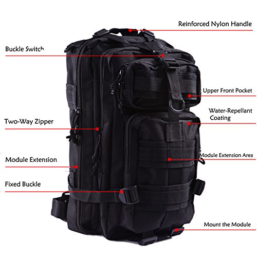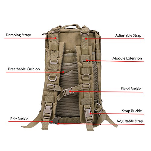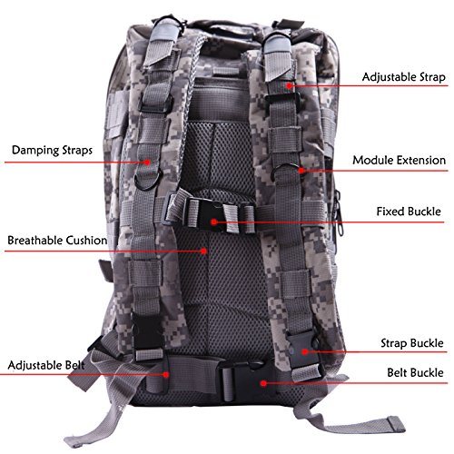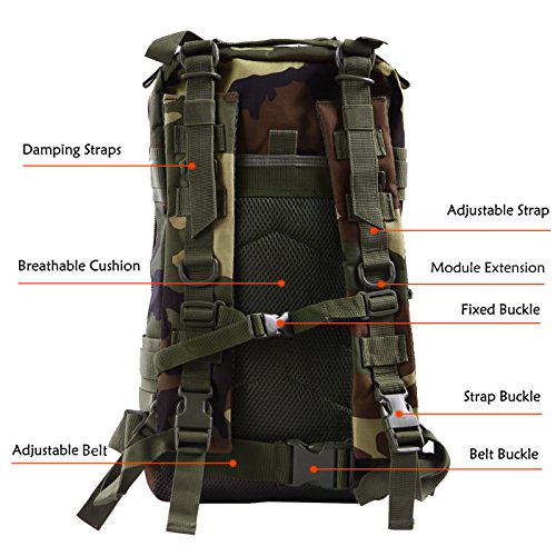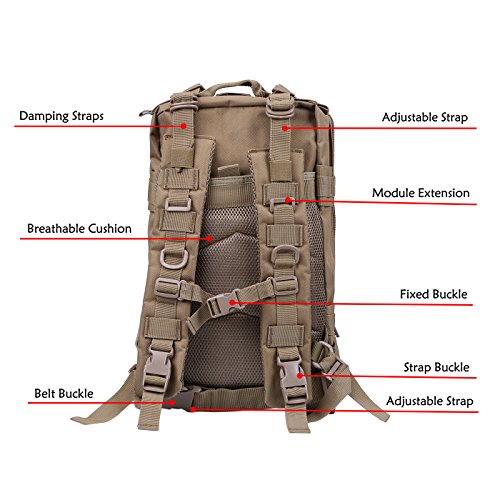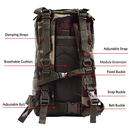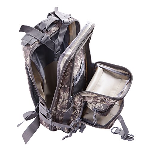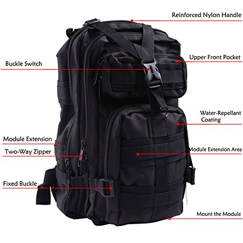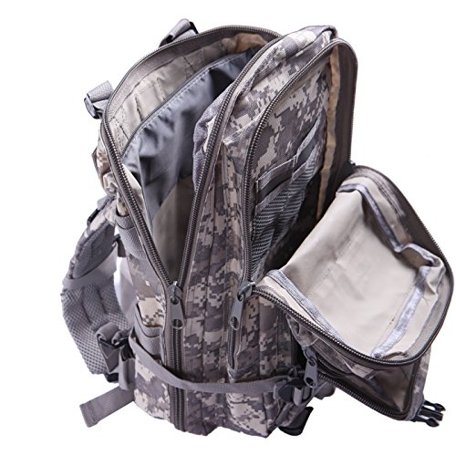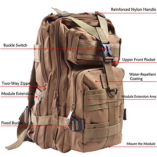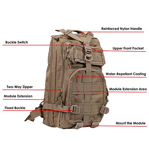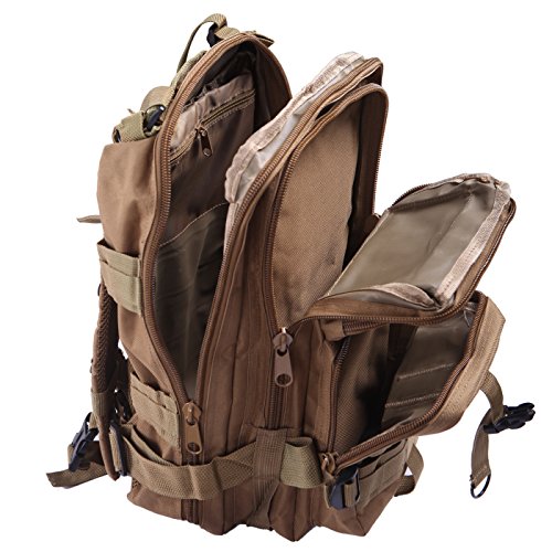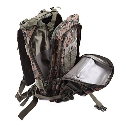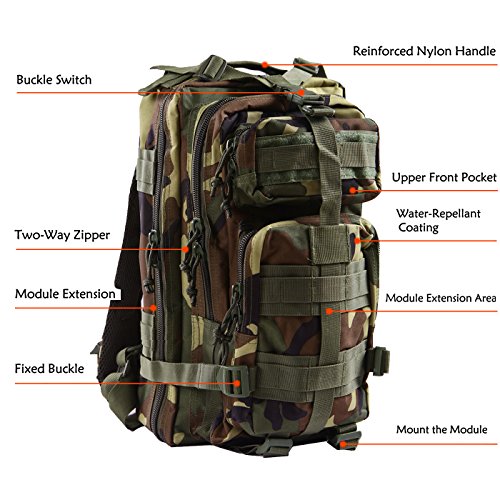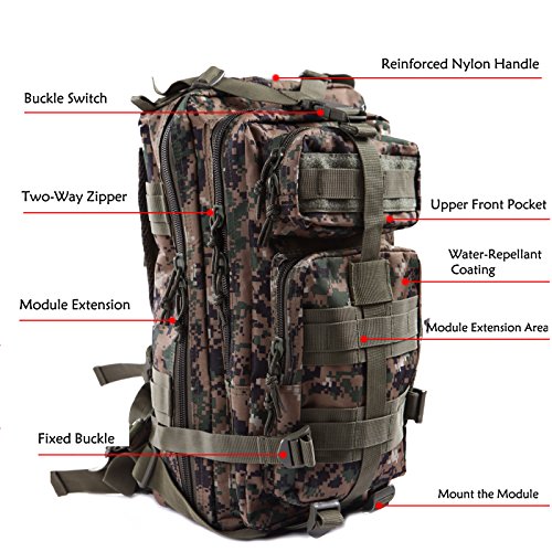 Product Details: Item Type: Backpacks Backpacks Type: Softback Backpack Usage: Normal Camping Hiking Gender: Unisex Closure Type: Zipper Pattern Type: Solid Occasion: Outdoor Style: Sport Capacity: 20L / 1220.47 cubic inches Material: 600D Nylon Colors: Black, Digital Camo, Tan Weight: Approx. 950g/ 2.09Lb Exterior Dimensions: 9" x 9" x 17" Main Interior Dimensions: 9" x 5.5" x 17" 0
