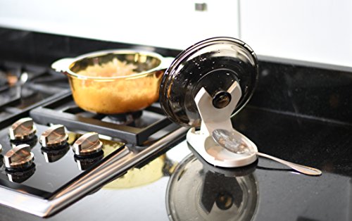 FLIPS OPEN - Flips open to provide an arm that props up a pot lid, and the base holds your stirring spoon, ladle, skimmer or other utensil. Works well for a variety of lid sizes and utensils.