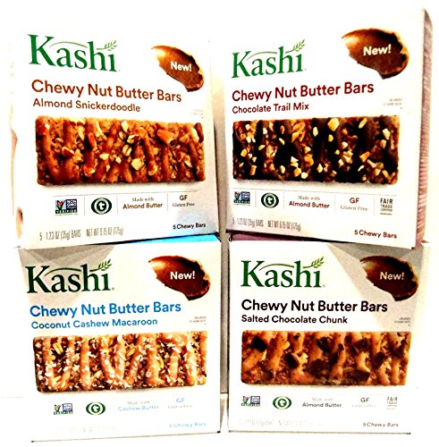 KASHI New 2017! CHEWY NUT BUTTER BARS Variety 4 Pack. 1 box each of SALTED CHOCOLATE CHUNK, CHOCOLATE TRAIL MIX, COCONUT CASHEW...