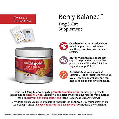 -. Binding : Misc. -. Brand : Solid Gold -. EAN : 0093766740075 -. Feature : Natural nutritional supplement providing cranberry and vitamin C / We recommend consulting one of our product specialists or a vet before using this product / We also have pH test strips to help customers keep a close eye on urinary tract health -. Label : Phillips Feed & Pet Supply -. Manufacturer : Phillips Feed & Pet Supply -. Model : 4060 -. MPN : 4060 -. NumberOfItems : 1 -. PackageQuantity : 1 -. PartNumber : 4060 -. ProductGroup : Pet Products -. ProductTypeName : PET_SUPPLIES -. Publisher : Phillips Feed & Pet Supply -. ReleaseDate : 2013-08-14 -. Size : 3.5 -. Studio : Phillips Feed & Pet Supply -. Title : Solid Gold Berry Balance Nutritional Supplement Powder for Dogs & Cats, Natural Cranberry & Blueberry Flavor, All Ages, All Sizes, 3.5oz Tub (Packaging May Vary) -. UPC : 093766740075