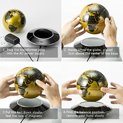 Warm tip 1. Make sure unit is installed on a flat surface. 2. Don't unplug the power adapter without remove the globe first, or the globe will pound the base.? 3.?Powerful magnet! Please keep this item at least 20cm away from computer devices and other electronic devices and metal. 4. If you can not make it work in the first time. Don't worry. Take a break. It won't be easy if you are the first time use it. Every 10 minutes take a break, or the base will over heat.? 5.?If you don't use this product for a while. We advice you to separate the ball from the base. And it's better put something between the ball and the base, such as books or put them into the box like new. 6. If you can't use it by yourself. Plesae contact us for help.