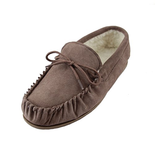 Product Description Genuine Ladies Suede Moccasins with warm lining made from Sheepskin Wool. Hard TPR non-slip sole, perfect slippers for keeping your feet warm this season. 0