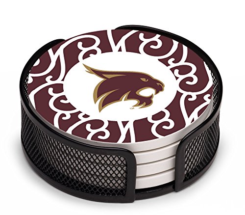 Thirstystone VTXST3-HA17 Stoneware Drink Coaster Set with Holder, Texas State San Marcos Pattern