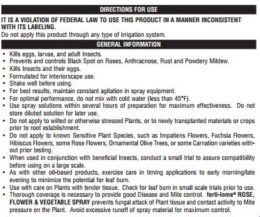 - Diseases Controlled: Black Spot, Powdery Mildew, Downy Mildew, Anthracnose, Rust, Leaf Spot, Botrytis, Needle Rust, Scab, Twig and Tip Blight and others.