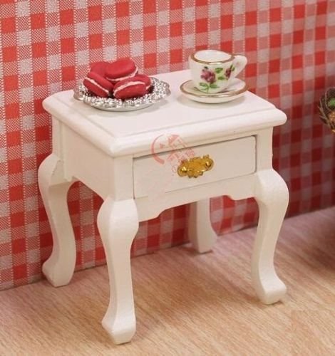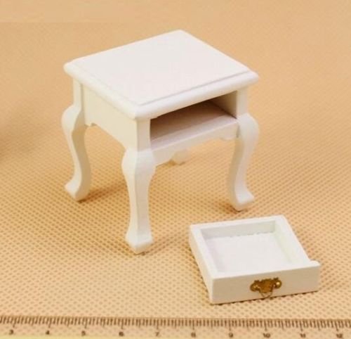 -. Title : EatingBiting(R)1:12 Dollhouse Miniature Doll Furniture Wooden White Bedside Cabinet Bed Table , DIY Scene Doll Home Furniture Craft Accessoreis , For Kid Children Holidays Gift