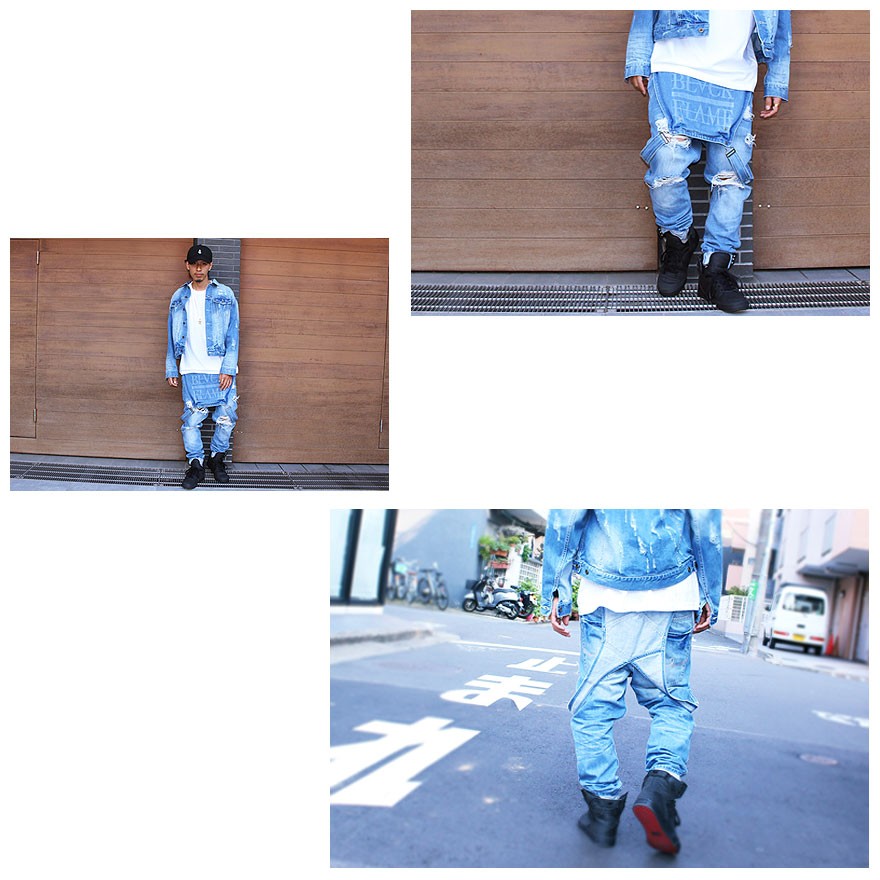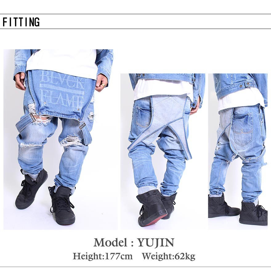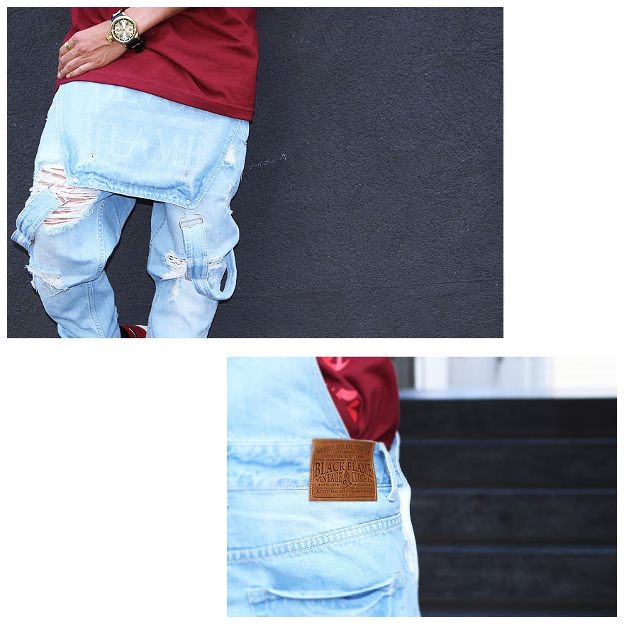 BLACK FLAME(ブラックフレイム)CLASSIC-クラシック-2016A/W COLLECTIONよりダメージオーバーオールが登場。BLACK FLAME初となるオーバーオールは、ビブポケット裏面にブランドロゴを配置し、着こなしの幅が格段と広がるアイテムに仕上がっている。さらに、テーパードの効いた太過ぎず適度にラフ感を持たせたシルエットが様々なスタイリングにマッチし、オーバーオール特有のアクセントのある着こなしを可能に。ヴィンテージ感を引き立たせる色落ちによる絶妙なカラーバランスに加えて足元に施されたクラッシュ加工が、クラシックシリーズならではのオリジナリティー溢れるタイムリーなディテールを盛り込んだ完成度の高い逸品。今期ダメージGジャンとのセットアップでの着用もオススメとなっている。