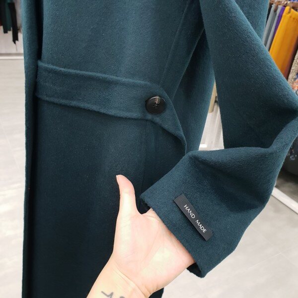 허리라인 언발벨트장식 포인트로 멋스러운 핸드메이드코트딥그린,네이비 컬러구성