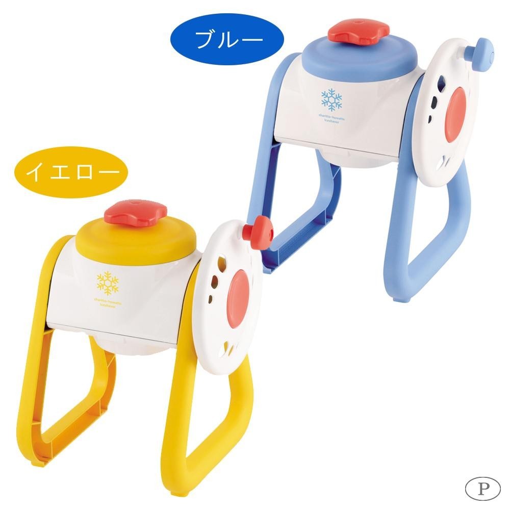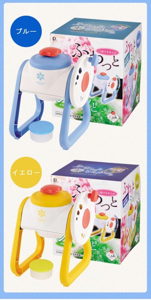 | 素材・材質 | 本体・ふた:ポリスチレン(耐熱温度70度、耐冷温度-20度) 回転版・調節板ユニットレバー・脚・回転ハンドル:ABS樹脂(耐熱温度70度、耐冷温度-20度) 氷押さえ:ポリアセタール(耐熱温度100度、耐冷温度-20度) 氷押さえハンドル・サイドキャップ・ハンドル・キャップ:ポリプロピレン(耐熱温度100度、耐冷温度-20度) 製氷カップ:ポリエチレン(耐熱温度70度、耐冷温度-20度) その他の材料:削り刃・バネ・スパイク:ステンレス鋼 |