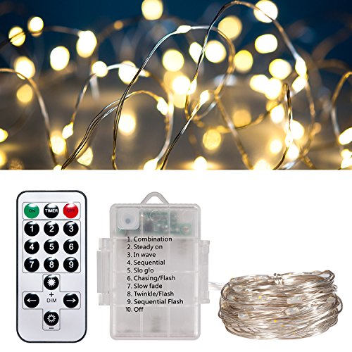 Lychee Remote Control Copper Wire Fairy String Lights, 5m 16.4ft Super Bright 50 LED Bulbs Battery Operate Starry Rope String Lights, for Party Wedding Costumes Home Decoration (Warm White)