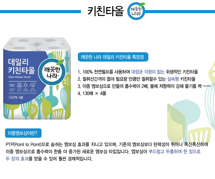 Sanitary Kitchen Towel 130 sheets 4 rolls Washcloth Kitchen utensils Clean country