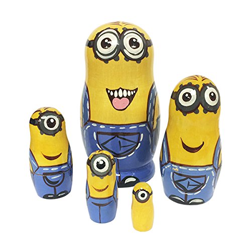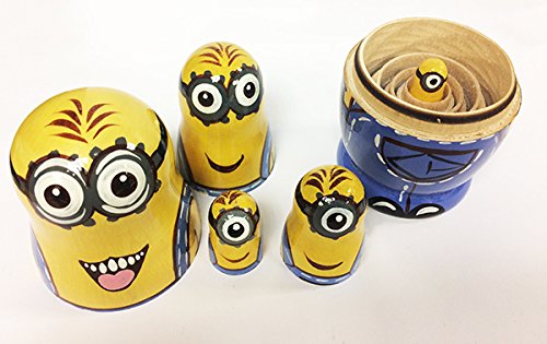 Studio : Handmade Publisher : Handmade Binding : Toy Product Description Animated cartoon Despicable Me has already become one of the classic and favorite children stories. Its vivid animation and funny characters contribute to the likeability of the cartoon. Minions are favorite characters of many modern kids. They are funny, always find adventure and are always ready to help their bespicable and villian, but very kind boss Gru. These nesting doll includes 5 minions of different sizes and appearance. Made from natural linden wood with environmentally friendly materials, this matryoshka is absolutely safe for little children. Recommended minimum age is 3 years. 0