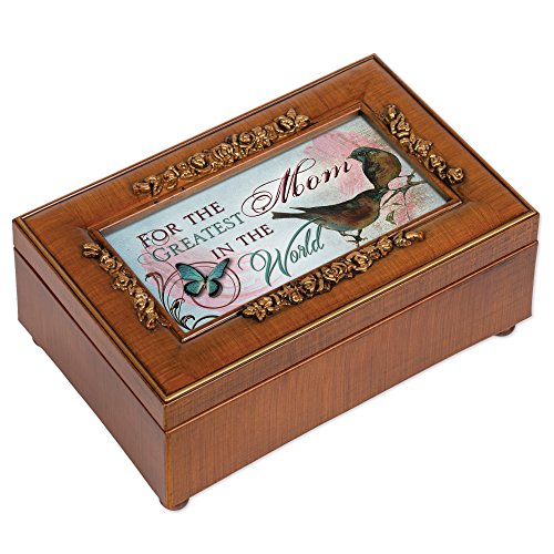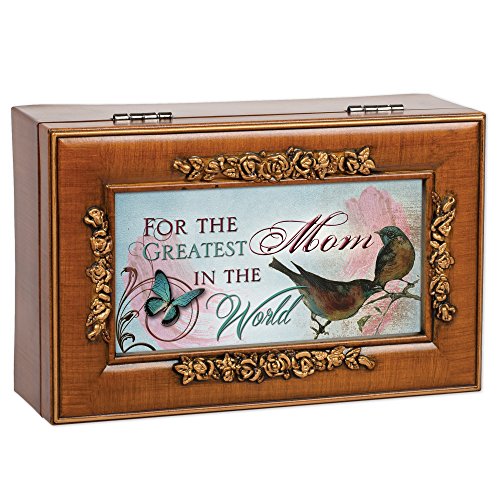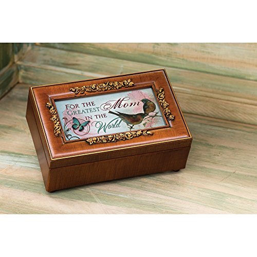 Greatest Mom Rich Walnut Finish Petite Jewelry Music Box - Plays You Light Up My Life