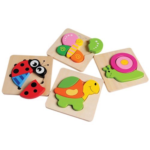 Product Description These simple, chunky Wooden animal/insect puzzles with 4-5 pieces are perfect for little hands. Set includes snail, butterfly, turtle, and ladybug. 0