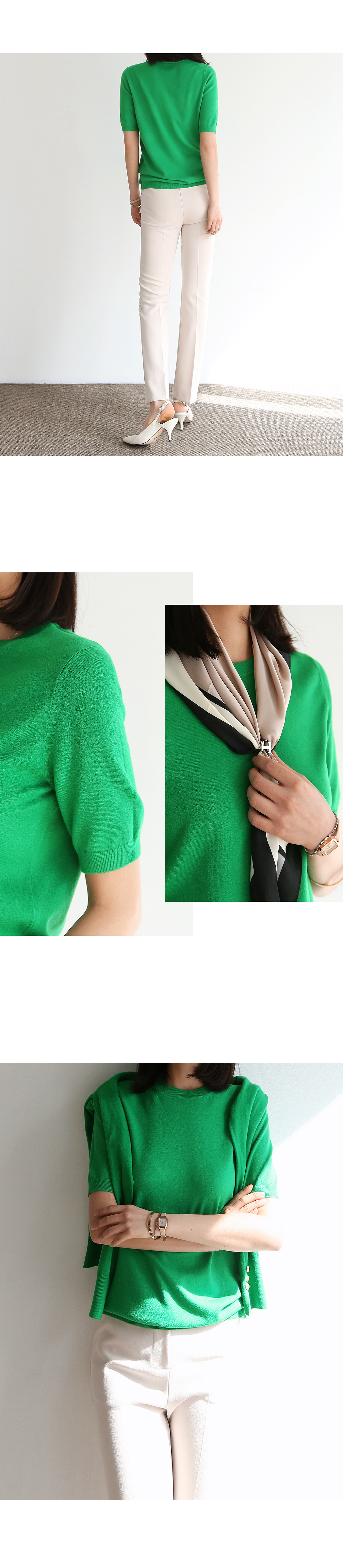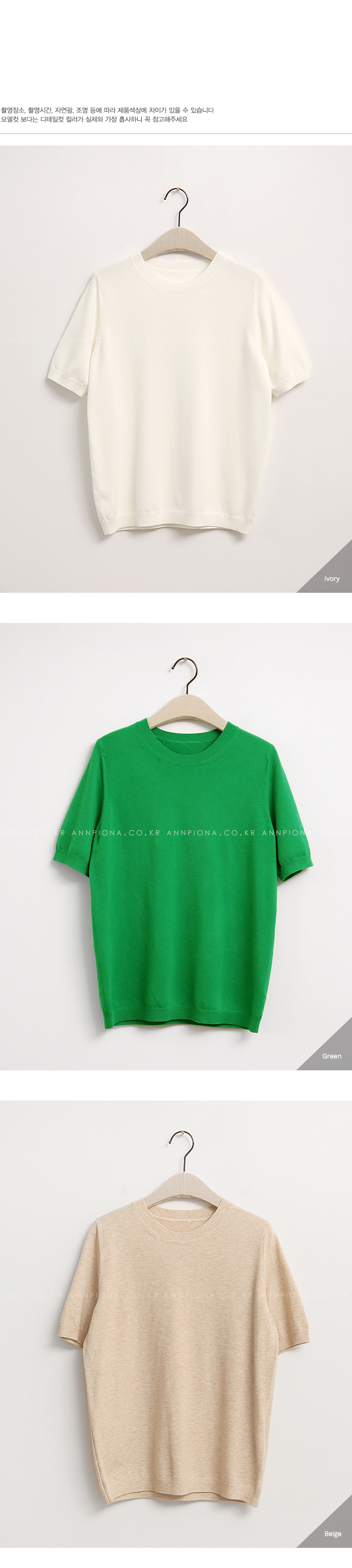 봄시즌에 적합한 라이트한 컬러감의 구성과 유행에 민감하지 않는 베이직한 디자인의 하프소매 니트로서