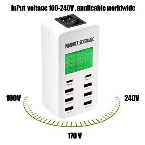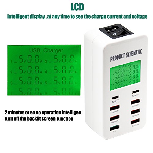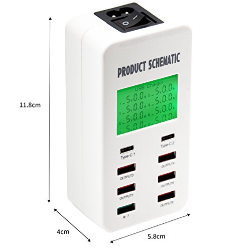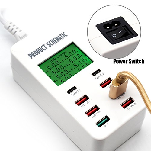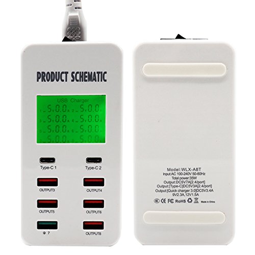 Product description ?6 USB ports 2 type-C ports charging station,it can charge 8 devices simultaneously ?Smart desktop charging docking station auto-adjust charging rate for all of your tablets,smart phones, digital cameras. ?This USB charger hub has protective circuit to prevent overcharging. ?High efficiency and low energy consumption. ?Good design Build quality, and the Power cord connector need use strong power to put in charger, not easy broken Specification 1.Color: White 2.Input: AC 100-240V 50-60Hz 3.Power: 35W 4.Output: DC 5V 7A [2.4/port] 5.Output: [Type-C] DC 5V 3A [2.4/port] 6.Output: [Quick charger 3.0] DC 5V 3.4A,9V 2.3A,12V 1.5A 7.Cable length: 1.4M / 4.6FT? Package: 1 X LED Display 8-Ports Desktop Charger Warranty :18-month warranty and friendly customer service. If you have any questions, please contact us. 0 |