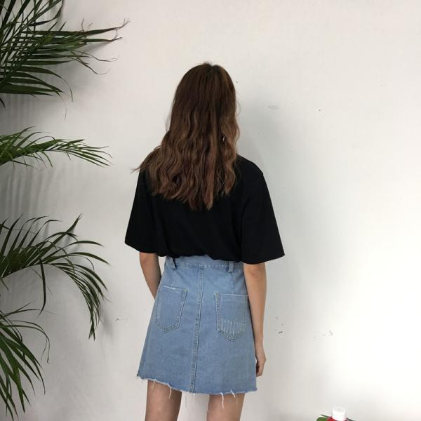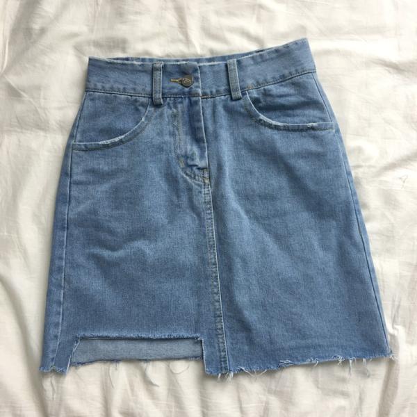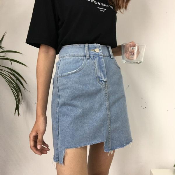 切りっぱなしが今年らしいデザインのデニムスカート。