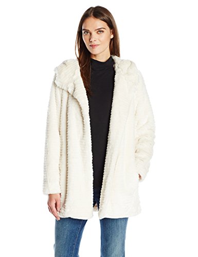 Product DescriptionGrooved faux fur hooded jacket with drawstring waist.0