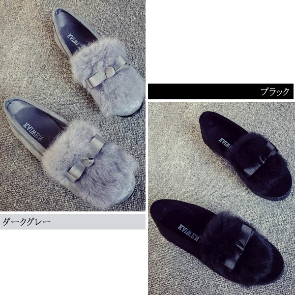 | 商品名 | ふわふわファー リボン付き フラットシューズ |