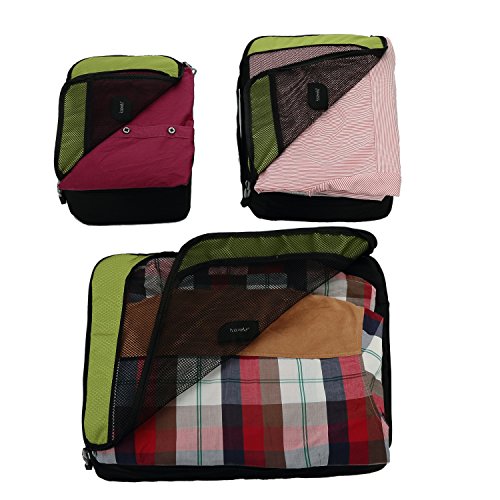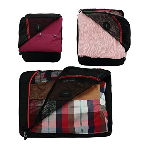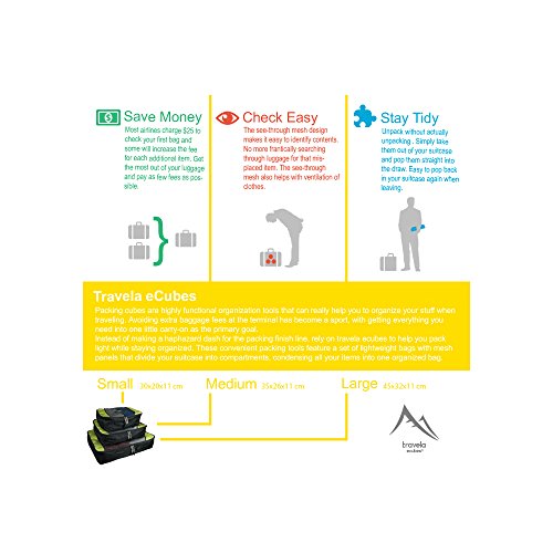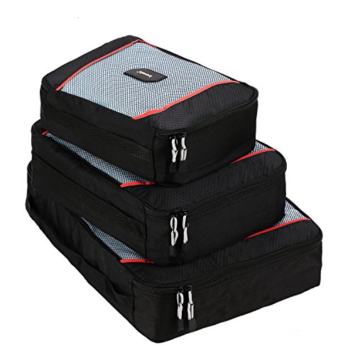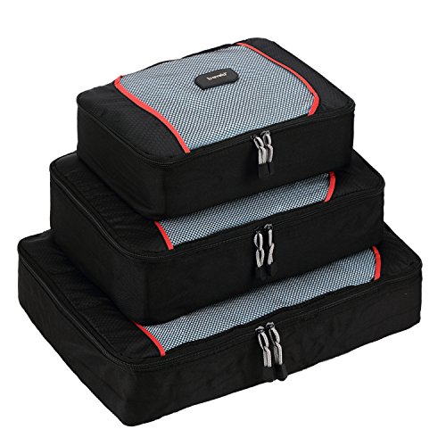 -. Brand : Travela -. Department : unisex-adult -. Feature : Dual fabric design with high density polyester / Durable zippers with corded pulls / Honeycomb and red piping accents / Guaranteed for life under the Travela Lifetime Warranty / Large: 45x32x11 cm, Medium: 35x26x11 cm, Small: 30x20x11 cm -. ProductGroup : Apparel -. ProductTypeName : LAGE -. Title : Premium Travela 3 Set Packing Cubes - Travel Organizers with Fast Free Shipping!