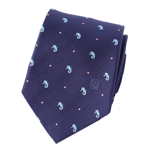 1. 네이비 바탕에 블루색 해마 캐릭터가 포인트인 슬림 넥타이