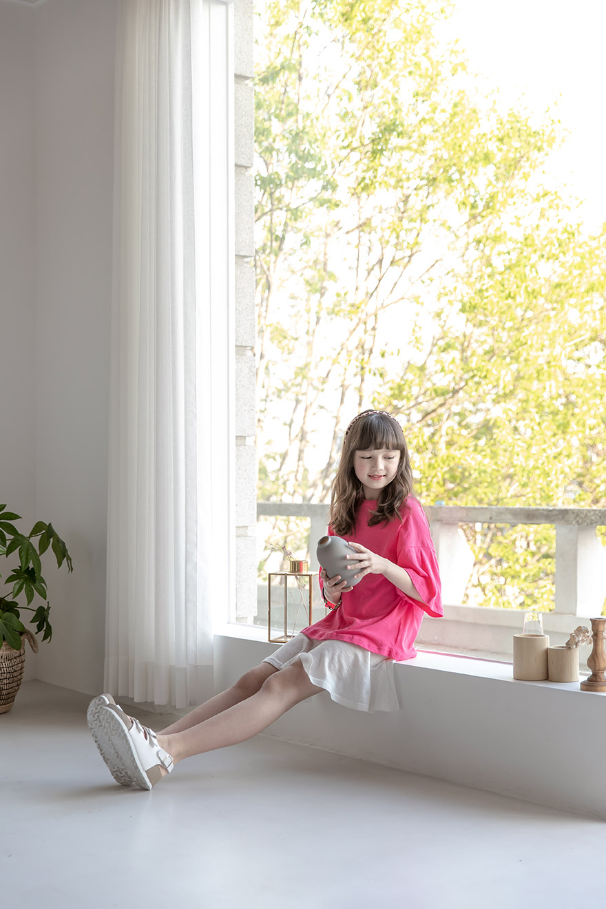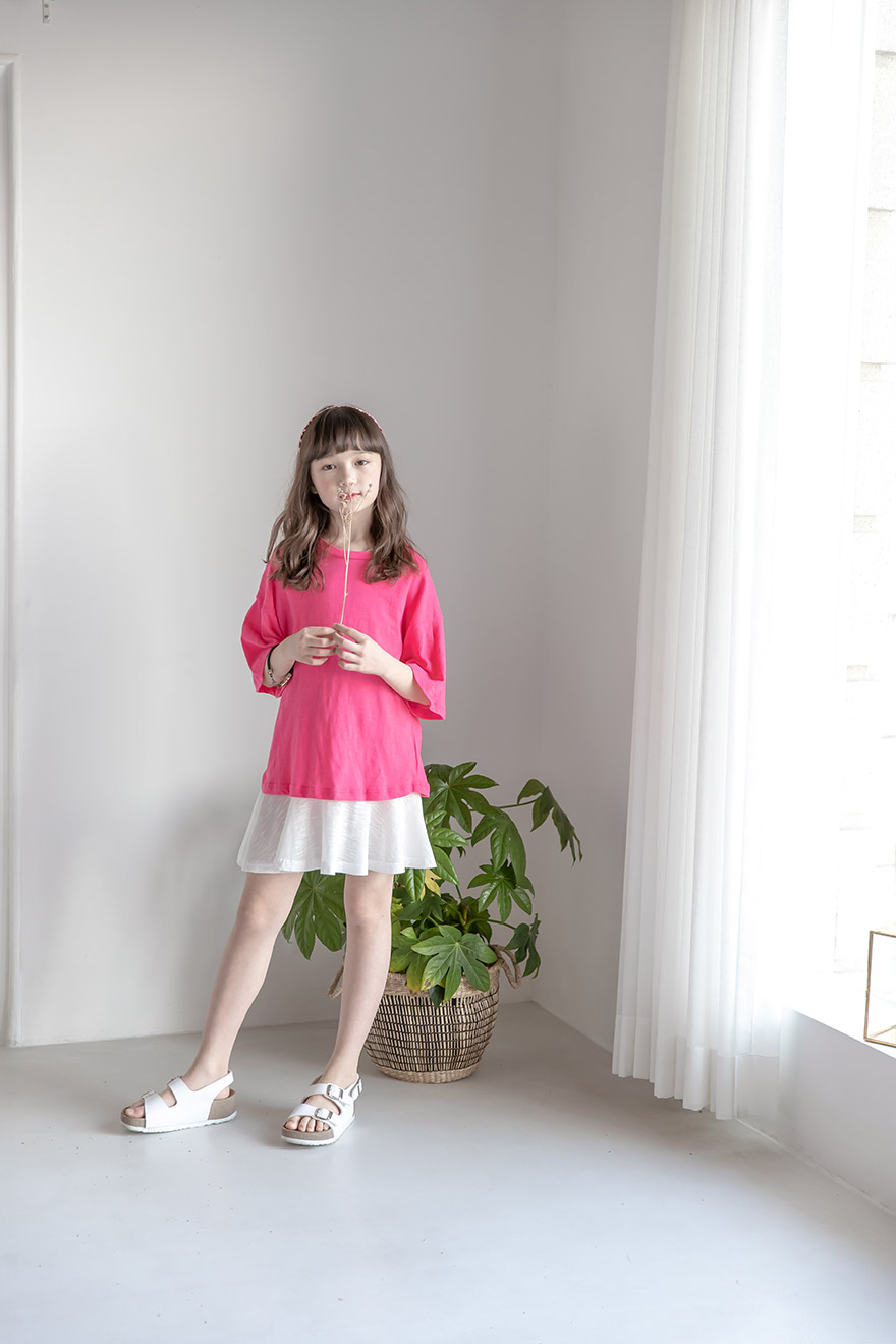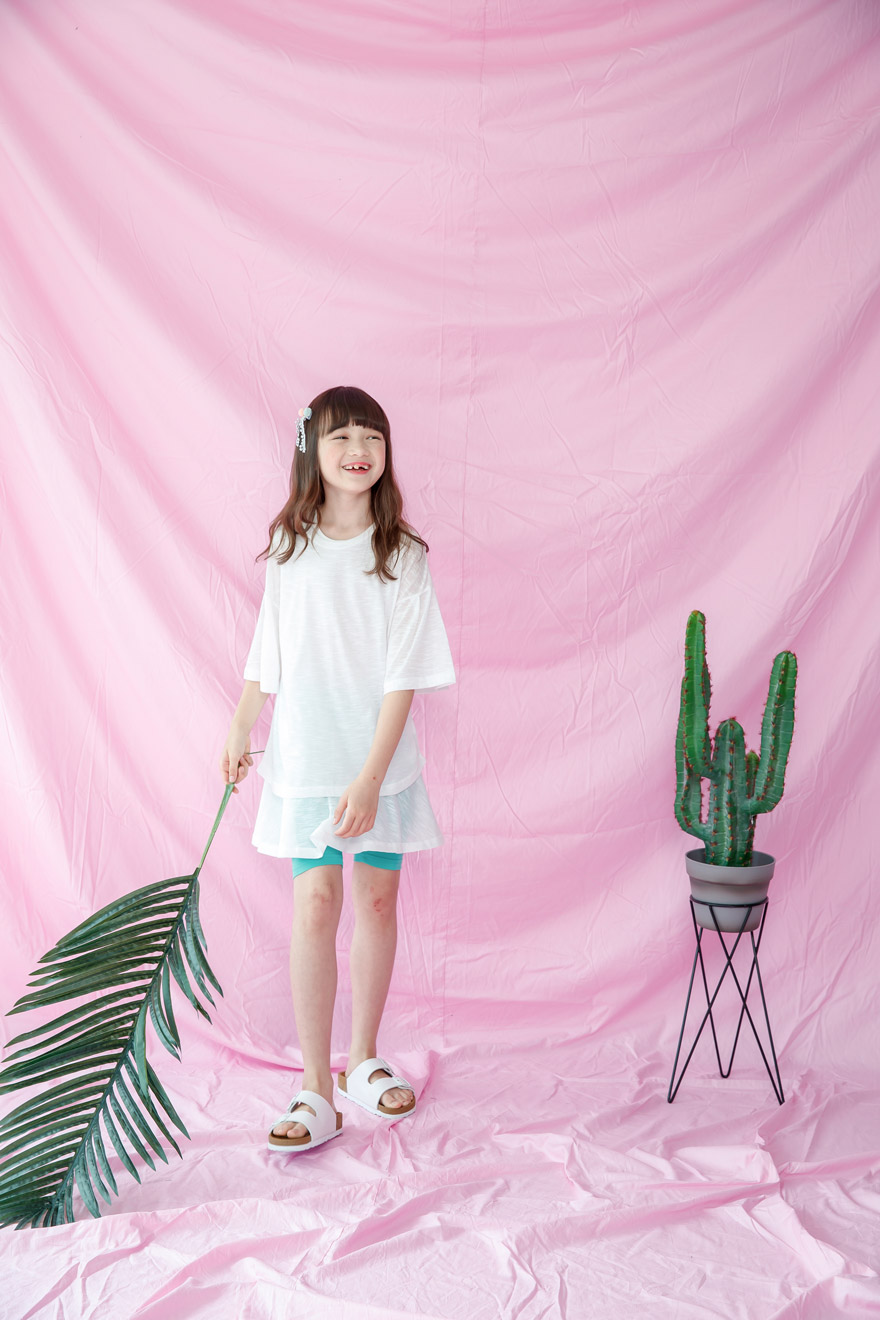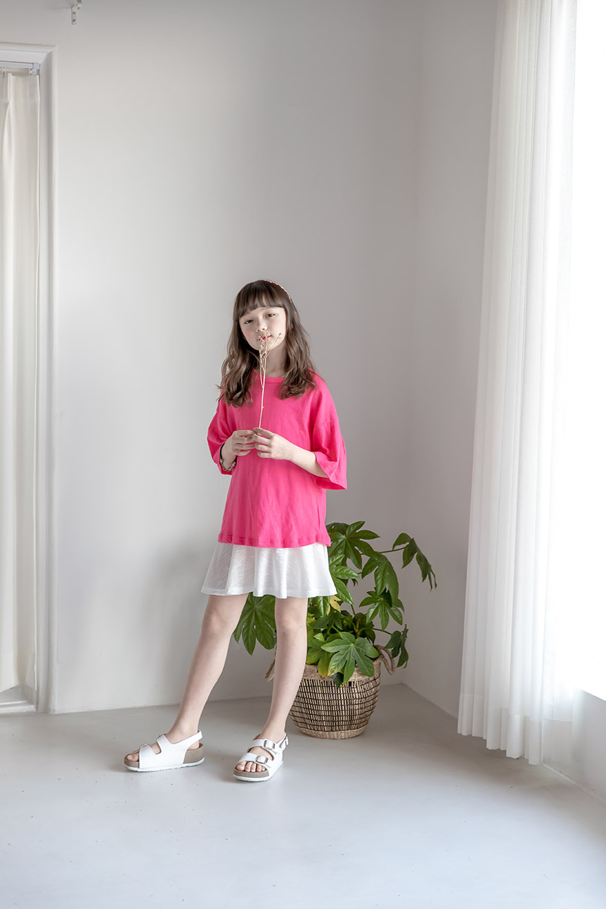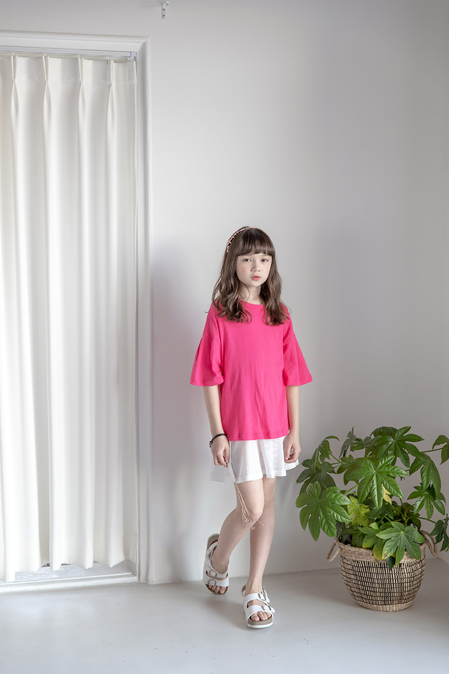9, 11, 13, 15, 17호로 준비되어 있으며 하단에 측정된 사이즈 표를 참고해 주세요. 이 제품은 표준 사이즈로 디자인 된 제품입니다. 피팅한 여아의 모델은 137cm에 30kg으로 다소 마른체격이며, 딱맞게 아이보리, 체리핑크 11호를 착용하였습니다. 깔끔한 핏으로 잘 맞네요 ;) * 사이즈 정보란에 티셔츠와 나시 사이즈 표를 꼭 참고 해 주세요 *