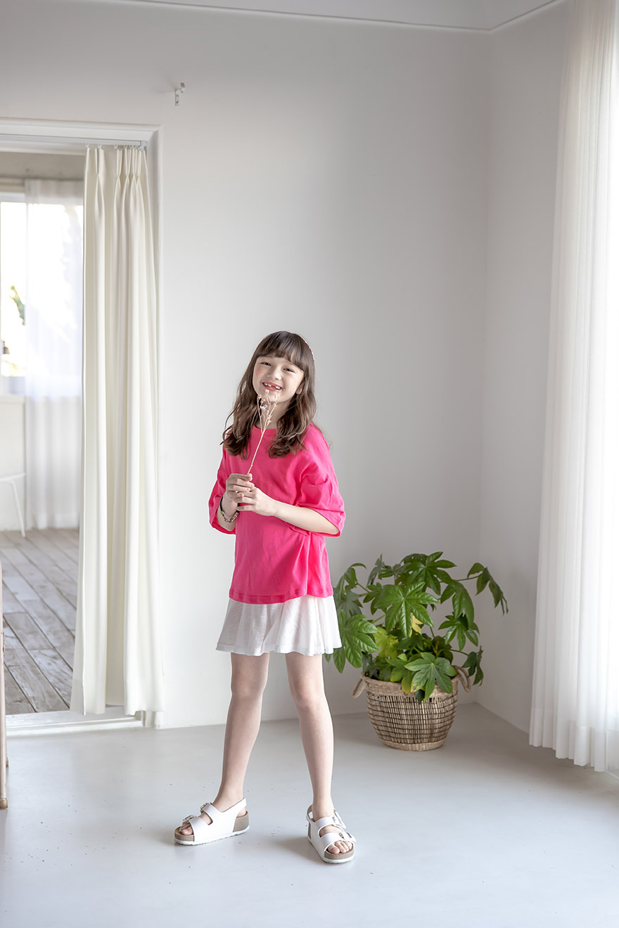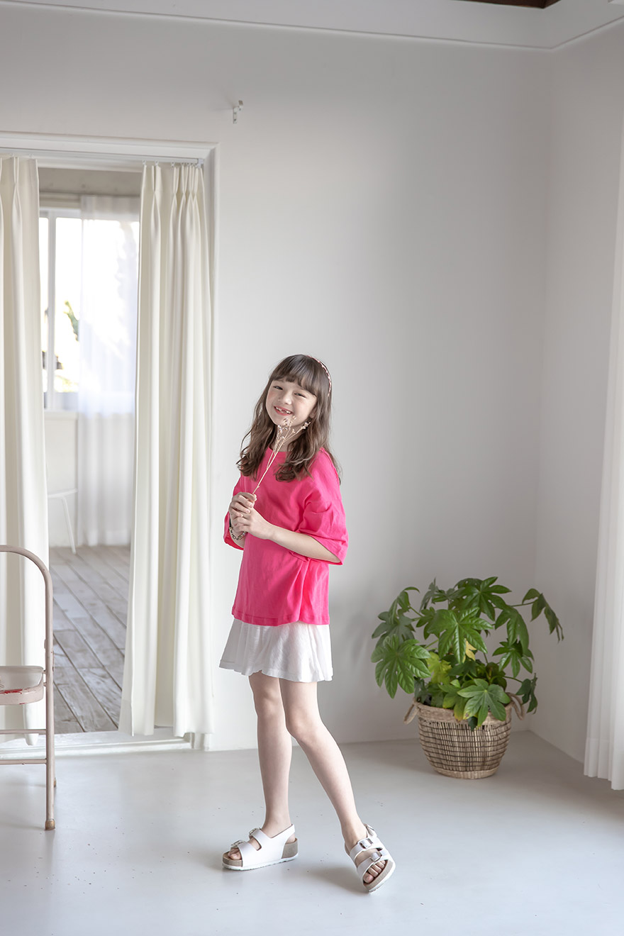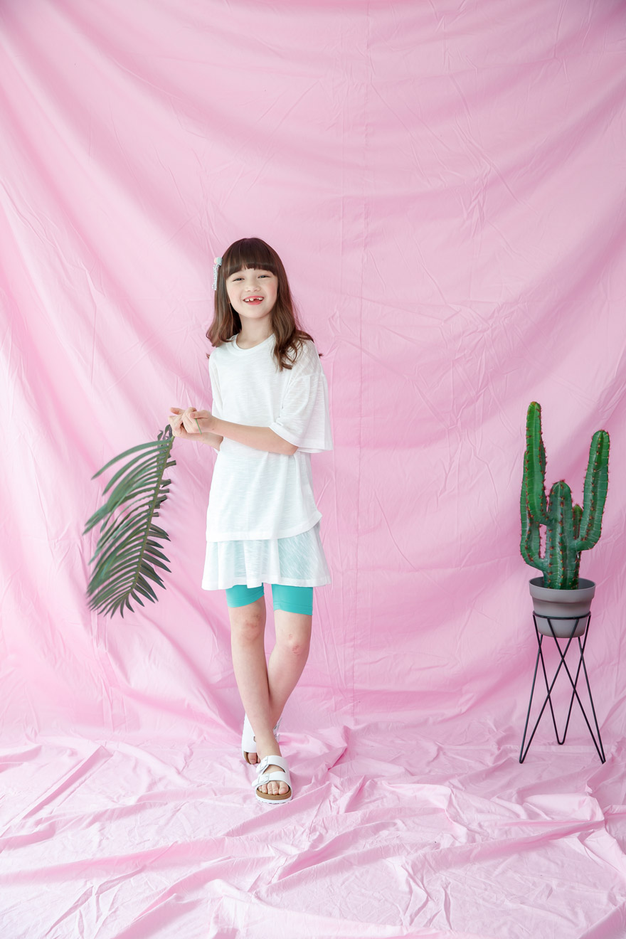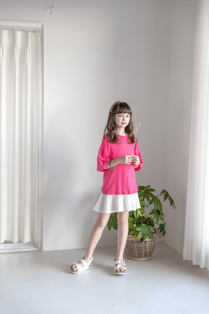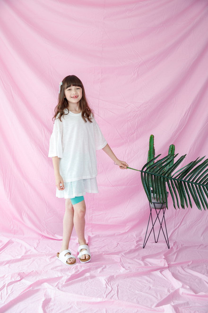 9, 11, 13, 15, 17호로 준비되어 있으며 하단에 측정된 사이즈 표를 참고해 주세요. 이 제품은 표준 사이즈로 디자인 된 제품입니다. 피팅한 여아의 모델은 137cm에 30kg으로 다소 마른체격이며, 딱맞게 아이보리, 체리핑크 11호를 착용하였습니다. 깔끔한 핏으로 잘 맞네요 ;) * 사이즈 정보란에 티셔츠와 나시 사이즈 표를 꼭 참고 해 주세요 *