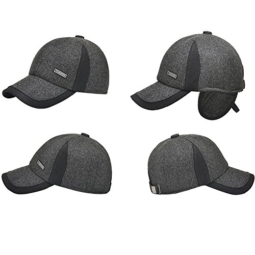 Feature : Material: Cotton Fleece Wool / Adjustable size fits 22-25" / Ear flaps are also lined in fleece and may be tucked up under hat when not in use / Baseball cap style, water repellent winter hat for Men and Teens / Machine wash.
