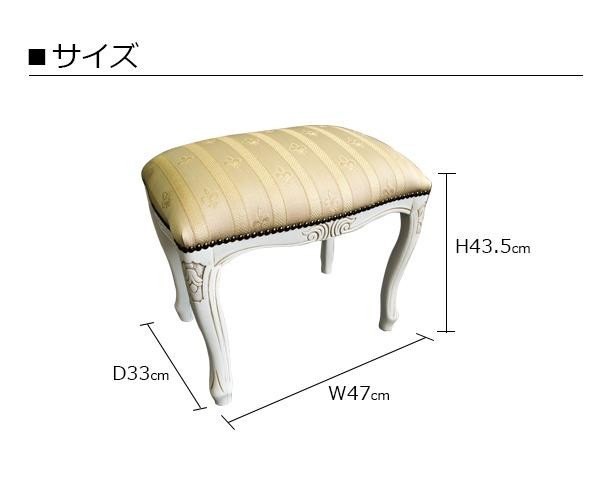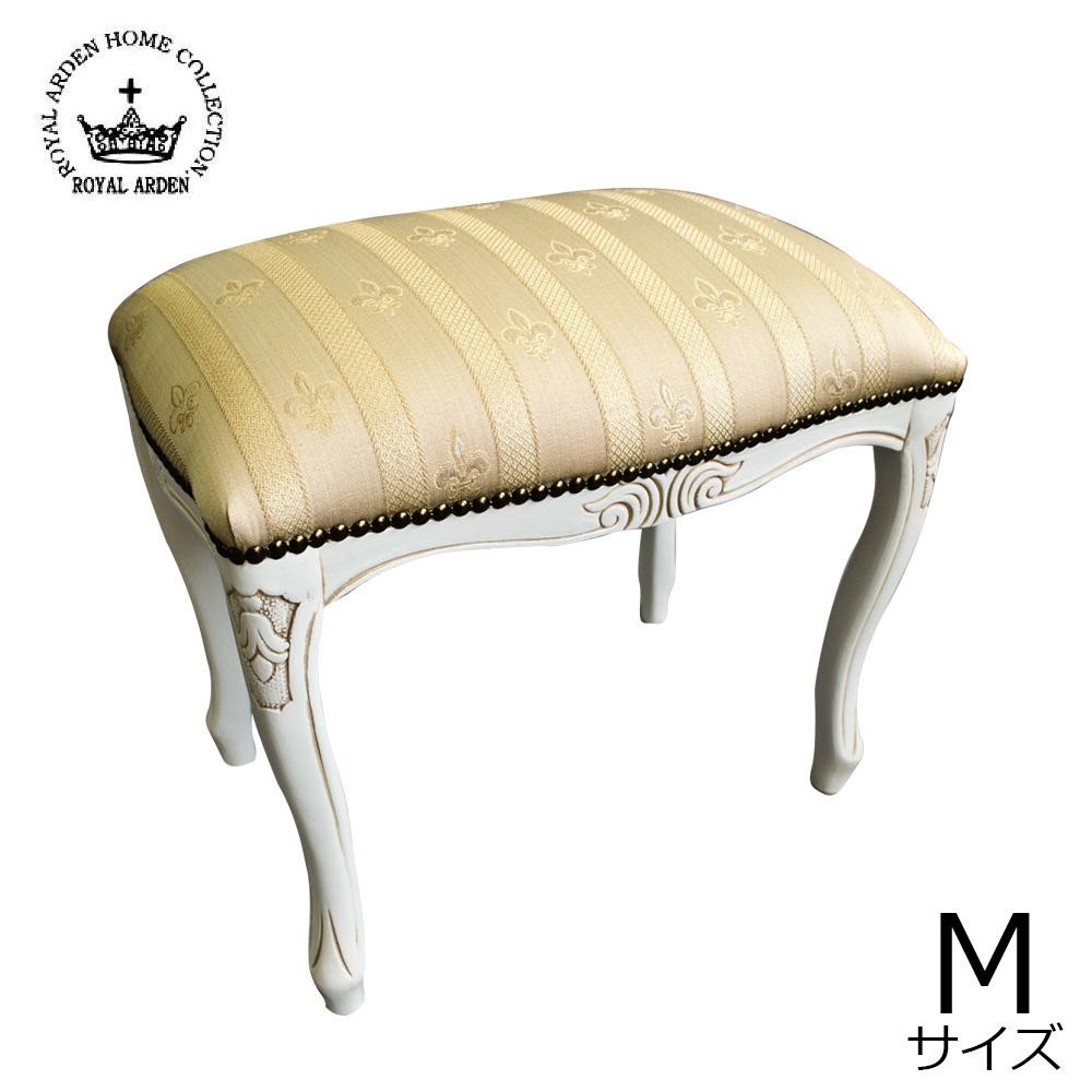 アンティーク調のおしゃれなスツールです。エレガントなお部屋にぴったり。 製造国:イタリア 素材・材質:脚:天然木ビーチ材ファブリック:ポリエステル100% ※サプライヤー直送品 ※2019年4月下旬入荷分予約受付中【商品名】ロイヤルアーデン イタリアスツール Mサイズ ホワイトストライプ 白脚 51374