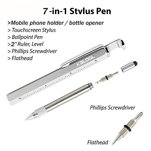 -. Title : Stylus , {2 Pack} Stylus Pen 7-in-1 Combo Pen [Functions as Touchscreen Stylus, Ballpoint Pen, 2" Ruler, Level, Phillips Screwdriver, and Flathead] for ALL smartphones & Tablets Gift (Silber+Black)