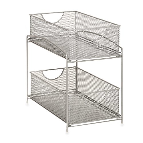 -. Feature : Put a .ORG 2-Tier Mesh Double Sliding Cabinet Basket in a cabinet or on the counter as a helpful place to consolidate and store a wide variety of items / Attractive contemporary metal mesh styling / Slide-out drawers for storage / 2 baskets are ideal for storing small items / Wipe clean with a dry cloth