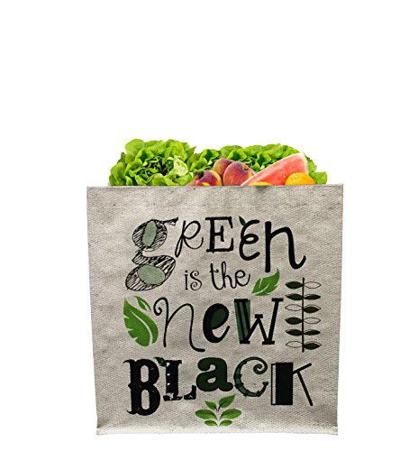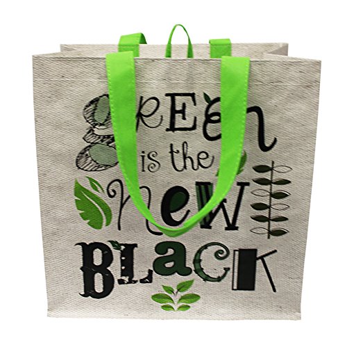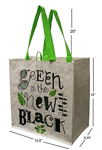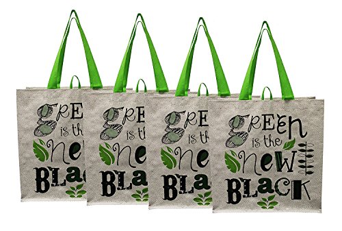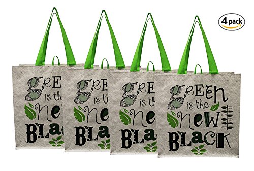 Earthwise Large Earth Day Reusable Grocery Shopping Tote Bag featuring "Green is the New Black" Print ( Pack of 4)