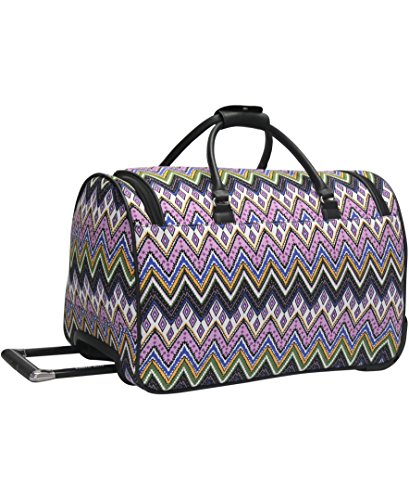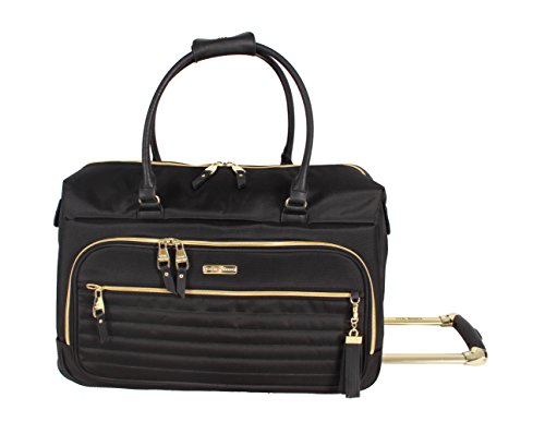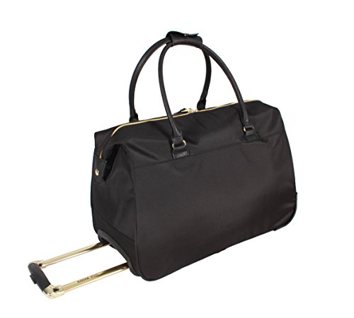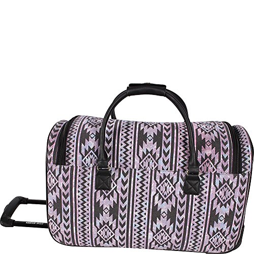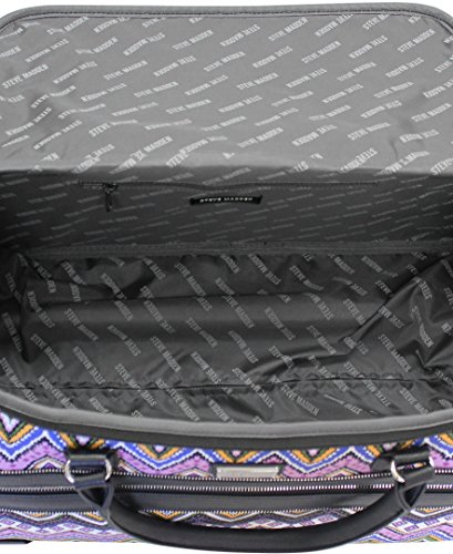 Steven Madden Luggage Soft Side Luggage delivers great durability together with a fashionable design. It is made from polyester fabric to provide your belongs with maximized protection. The luggage has inline skate wheels and telescopic push button handle system. This sharp looking piece with Steve Madden signature lining will keep you traveling in style. The dimension of the duffel is:20"x13"x10" The weight is approximately 5 lbs. This luggage is covered by a 5 year manufacturer's warranty. 0 |