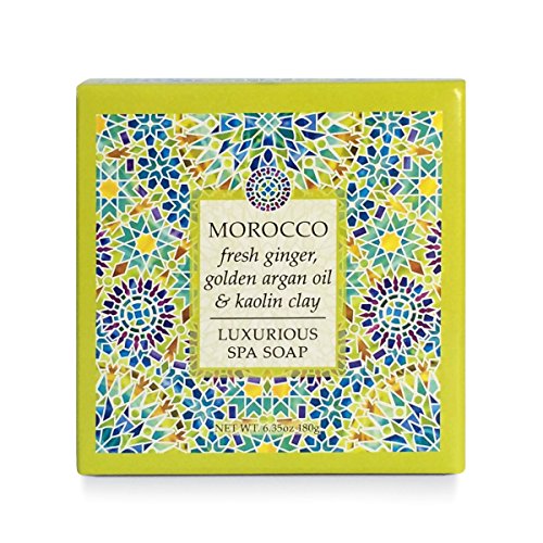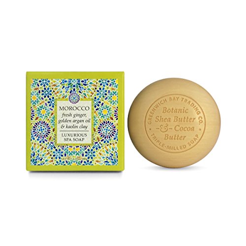 Greenwich Bay Morocco Luxurious Argan Oil Spa Soap Enriched w/ Shea Butter, Cocoa Butter, Golden Argan Oil, Fresh Ginger, and Kaolin Clay 6.35 oz Destination Round Vegetable Bar Soap