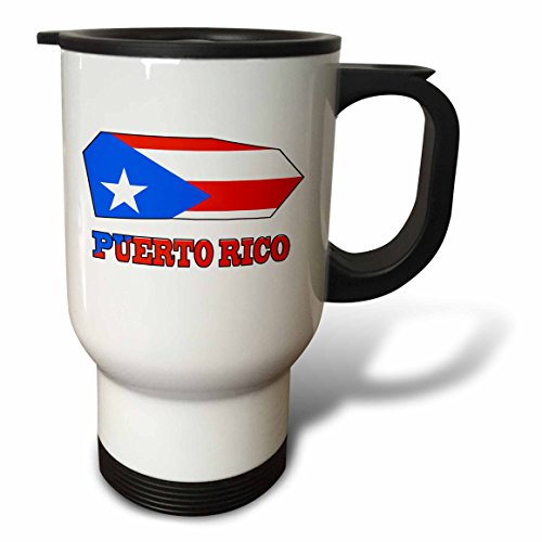 3dRose The Flag of Puerto Rico in The Outline Map and Name of The Country Puerto Rico - Travel Mug, 14oz., Stainless Steel (tm_55483_1)