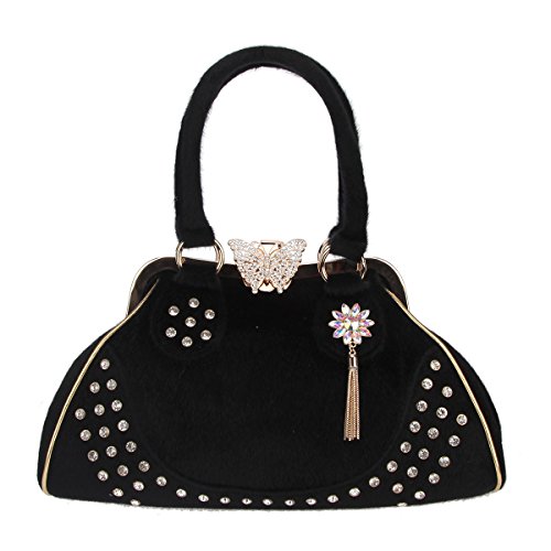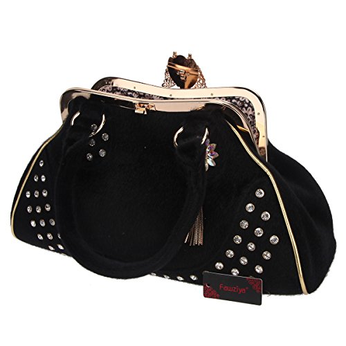 Fawziya Butterfly Tassel Fur Large Shoulder Bags For Women Rhinestones Purse And Handbags