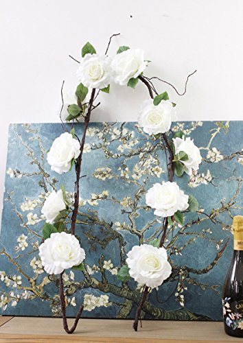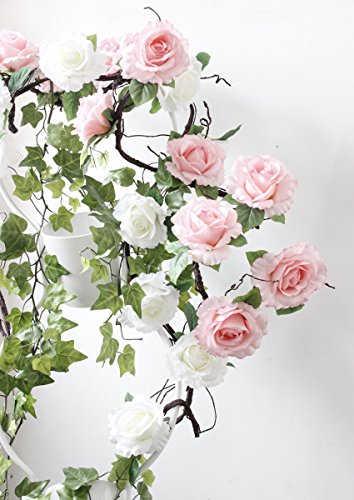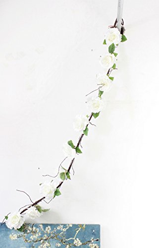 Get Orange 72 Inch White rose Garland Artificial Rose Vine with Green Leaves Flower Garland For Home Wedding Decor