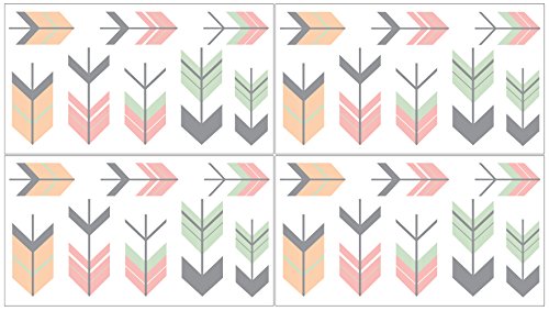 Sweet Jojo Designs 4-Piece Baby and Kids Wall Decal Stickers for Coral, Mint and Grey Woodsy Collection